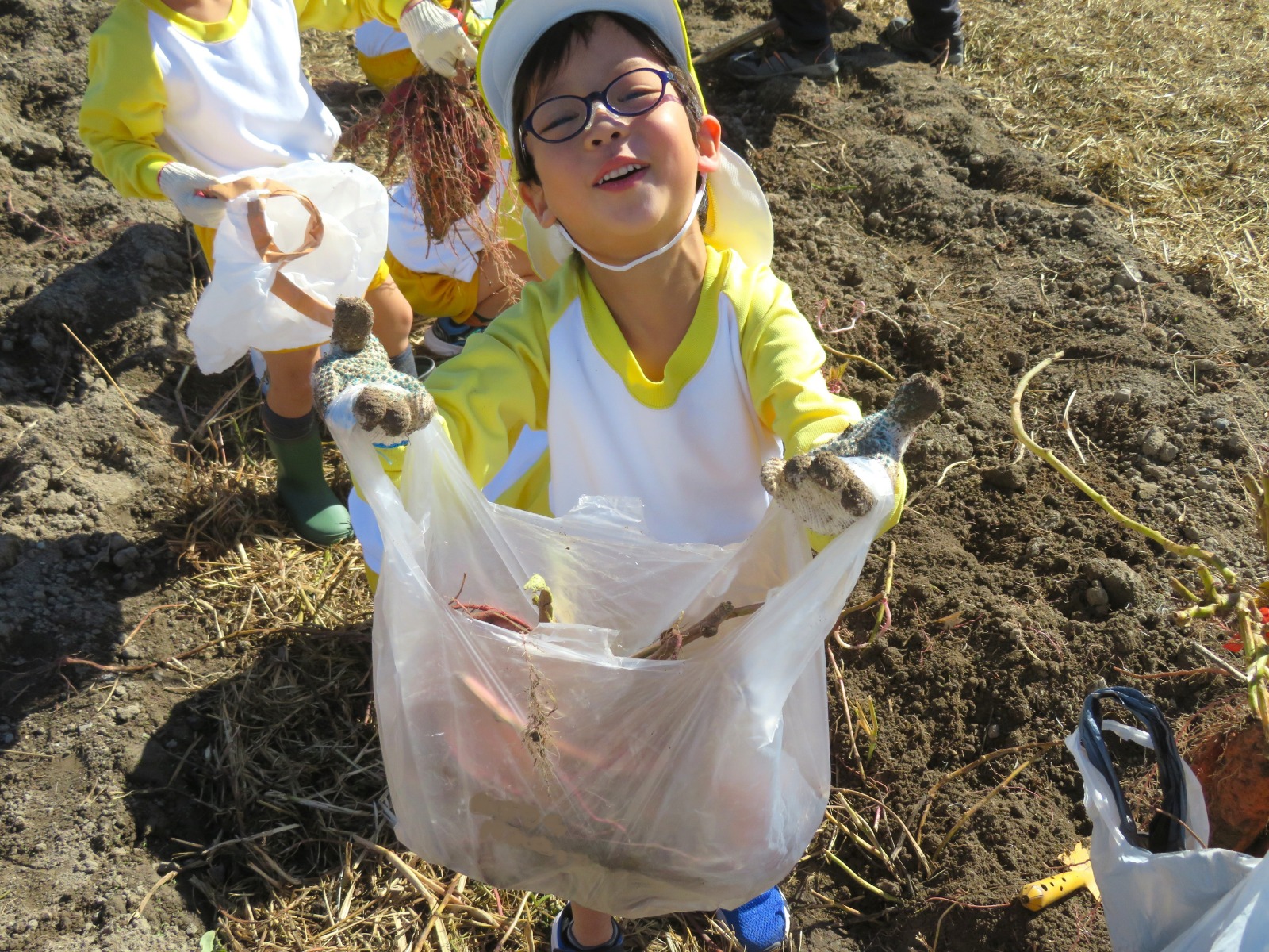 丁寧に土を耕して頂いていたので、自分の力で楽しそうに引っこ抜いていましたよ🎶